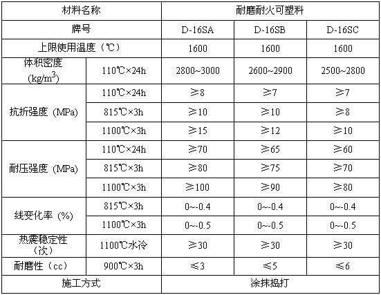 【產品名稱】:耐磨耐火可塑料 D-16SA、D-16SB、D-16SC