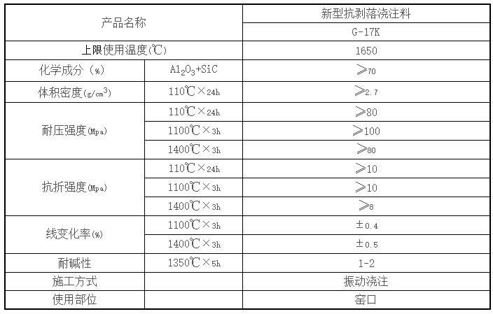 【產(chǎn)品名稱】:窯口用抗剝落澆注料 G-17K