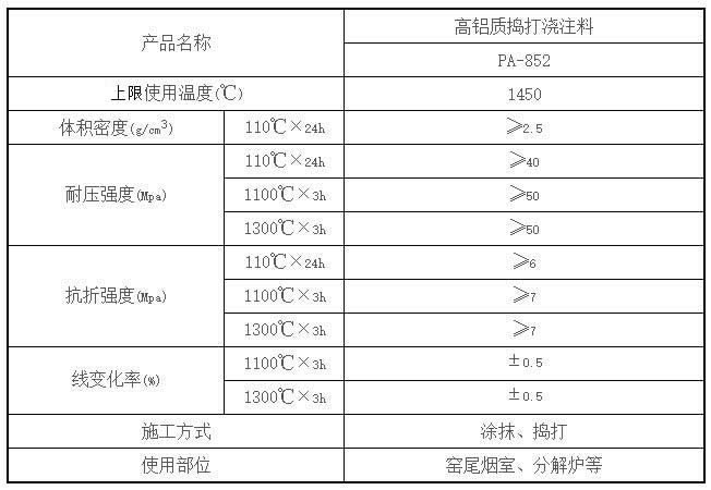 【產(chǎn)品名稱(chēng)】:高鋁質(zhì)搗打澆注料PA-852