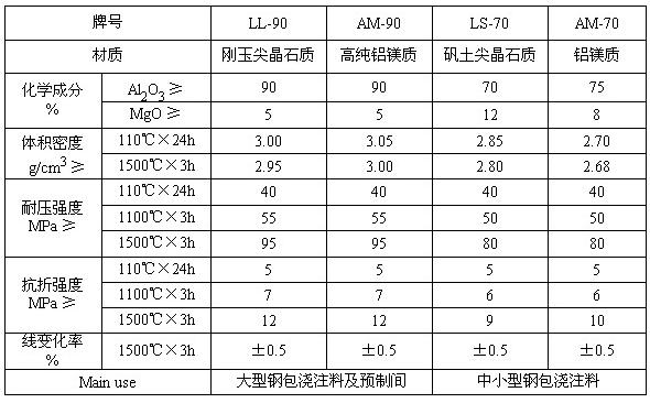 種類:根據不同使用條件可分為:一般鋁鎂澆注料、鋼包渣線澆注料和高檔鋁鎂澆注料等。根據不同包型一般包齡在60-150次之間。
